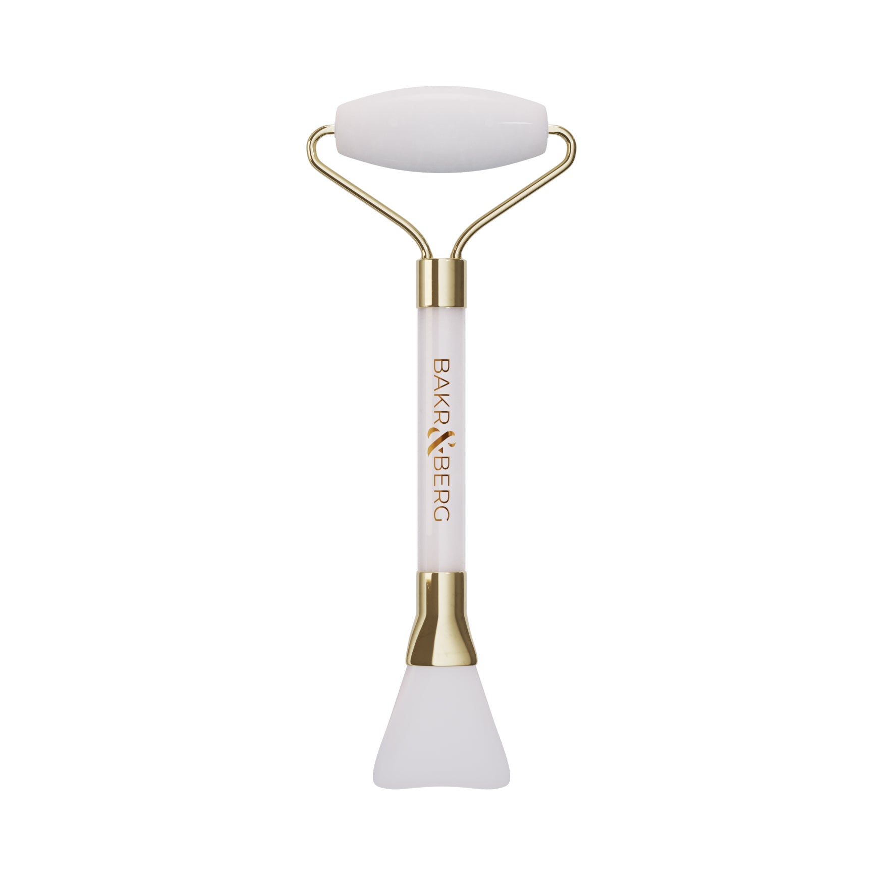 BAKR&BERG Rock Crystal Faceroller met een roller van rotskristal voor ontspanning van het gezicht en een siliconenkwast voor het optimaal aanbrengen van een gezichtscrème of een verzorgend masker.